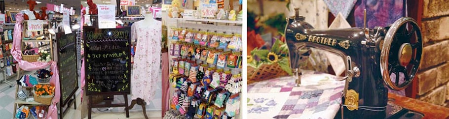 これまでに、みなとみらい、藤沢、大船、東戸塚に生地・手芸用品専門店を出店、手芸、手作りを愛する地域の皆様にご利用頂きました。古くは現在のイセザキモールにて、進駐軍の奥様方に向けたドレス専門の仕立て屋を初代が開店してから、126年の歴史ある生地・手芸用品専門店です。