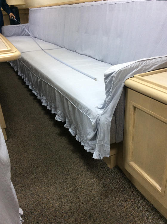 海の安全を守る横浜海上保安庁の『巡視船 しきしま』と『巡視船 いず』の応接室、ダイニングの椅子カバーを製作させて頂きました。