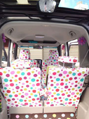 車の色がアイボリーなので、鮮やかなブルーと可愛いオカメインコ柄が、車内を明るくしてくれました♪
