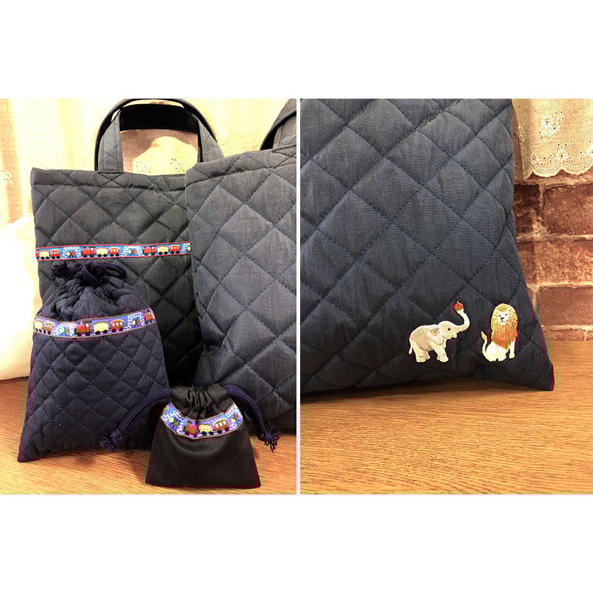 神奈川県鎌倉市[鎌倉女子大学幼稚部]手提げ袋・靴袋・箸袋・ランチョンマット・コップ入れ・お弁当袋のオーダー